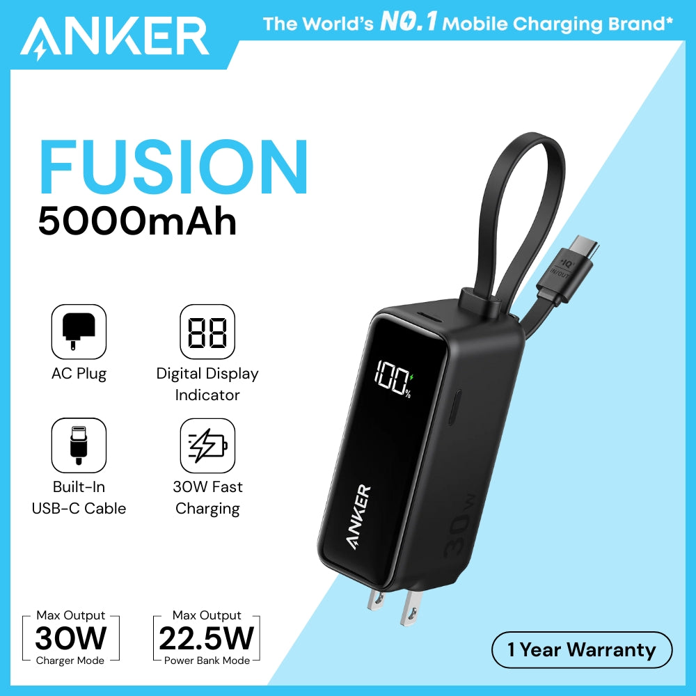 ANKER - FUSION 5000mAh Built-In Cable Power Bank (30W) Description 3-in-1 Charging Innovation Hands-Free, Hassle-Free Two-Way Fast...