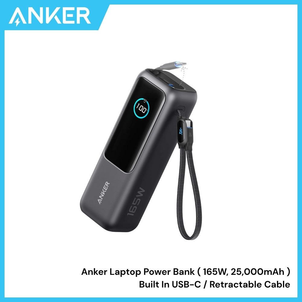 ANKER - Laptop 25000mAh Power Bank With Built-In & Retractable Type-C Cable ( 165W ) Description Triple...