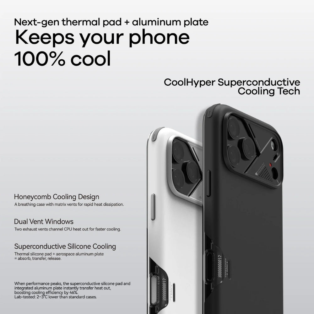 CoolHyper Superconductive Cooling Tech with silicone pad and aluminum plate keeps your iPhone up to 46% cooler.