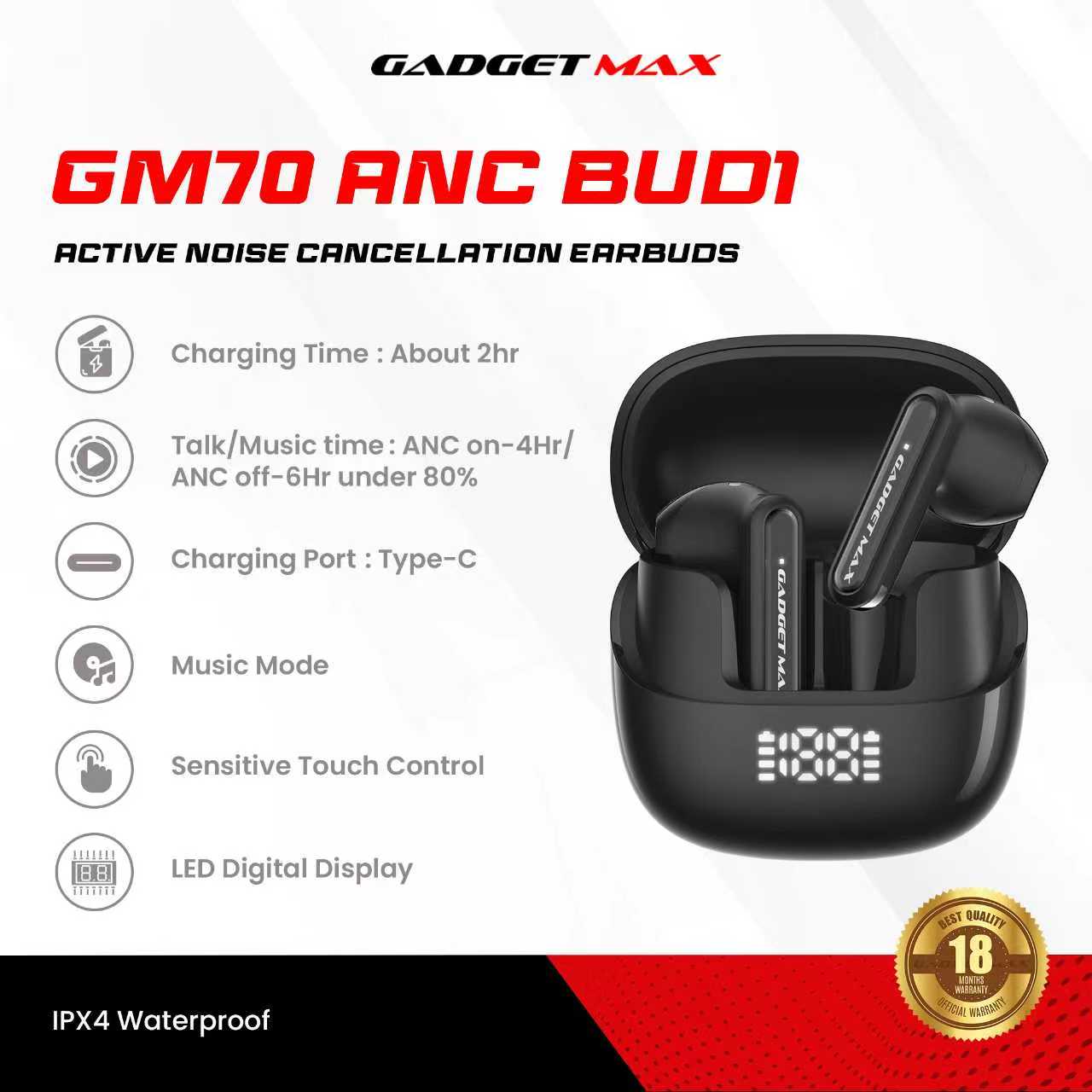 GADGET MAX - GM70 ANC BUD1 Active Noise Cancellation Bluetooth Wireless Earbuds
