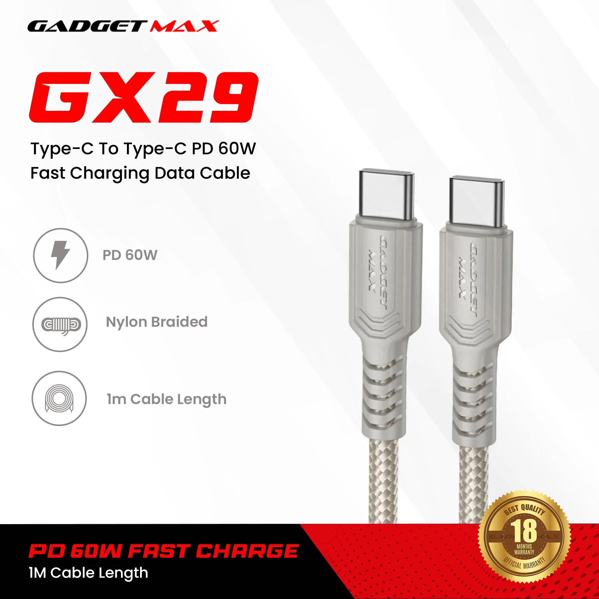GADGET MAX - GX29 C-C Woven Series Type-C To Type-C Fast Charging Data Cable (60W) Description The...