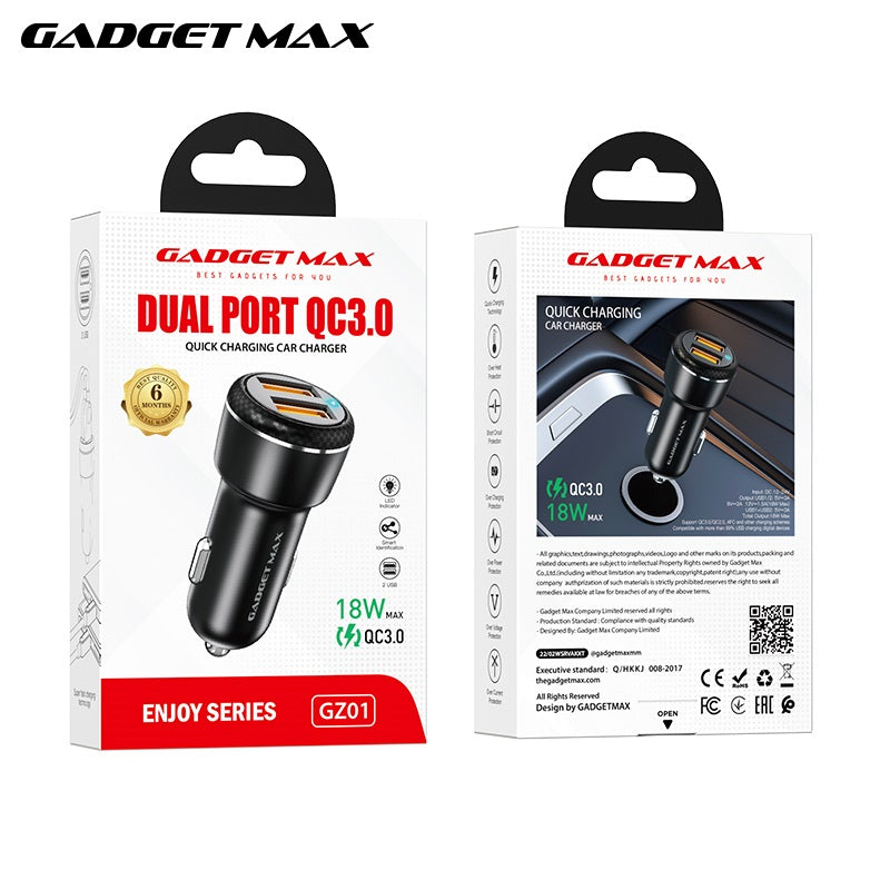 1. input: DC12-24V2. Output: USB-A 1/2: 18W (QC/FCP/ACP); total output: 5V/3A3. Material: Aluminum alloy + flame-retardant PC material4. Length*diameter: 65*28mm, weight: 22g