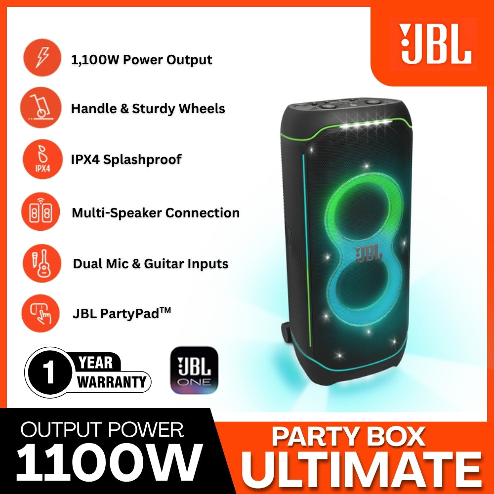 JBL - PartyBox Ultimate Bluetooth Party Speaker General Specifications Output power (W): 1100 Audio Specifications Dynamic frequency...