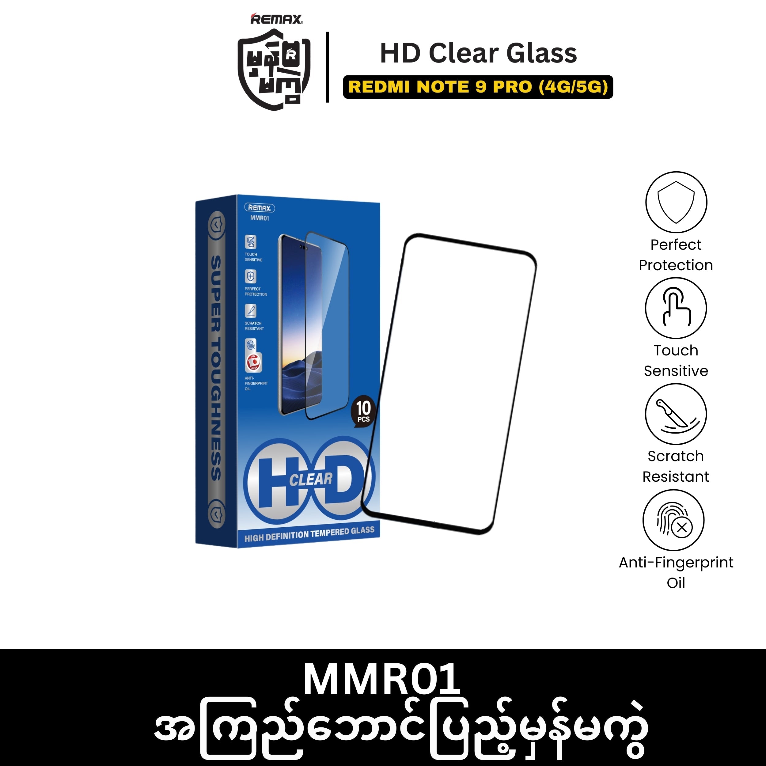 REMAX - MMR01 HD Clear Tempered Glass - REDMI NOTE 9 PRO (4G/5G) Description Touch Sensitive Perfect...