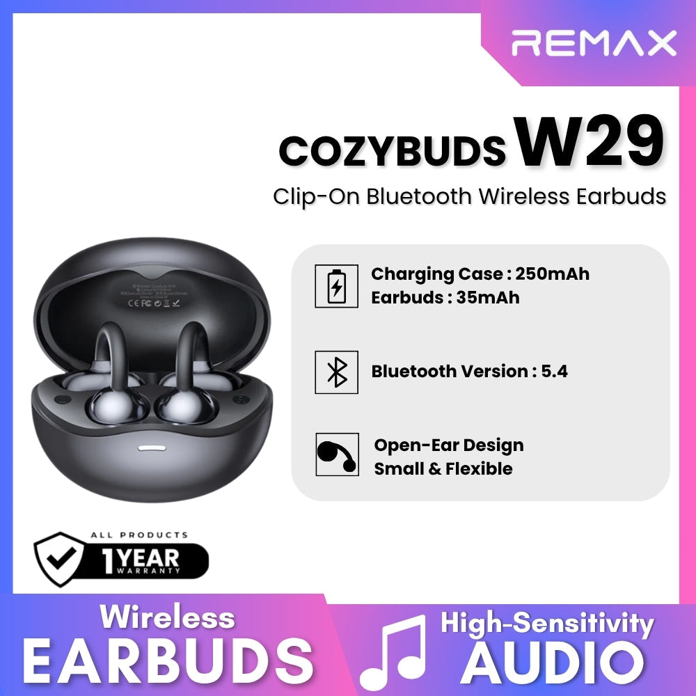 REMAX - Cozybuds W29 Clip-On Bluetooth Wireless Earbuds Description Innovative spherical design, minimalist appearance, small and flexible,...