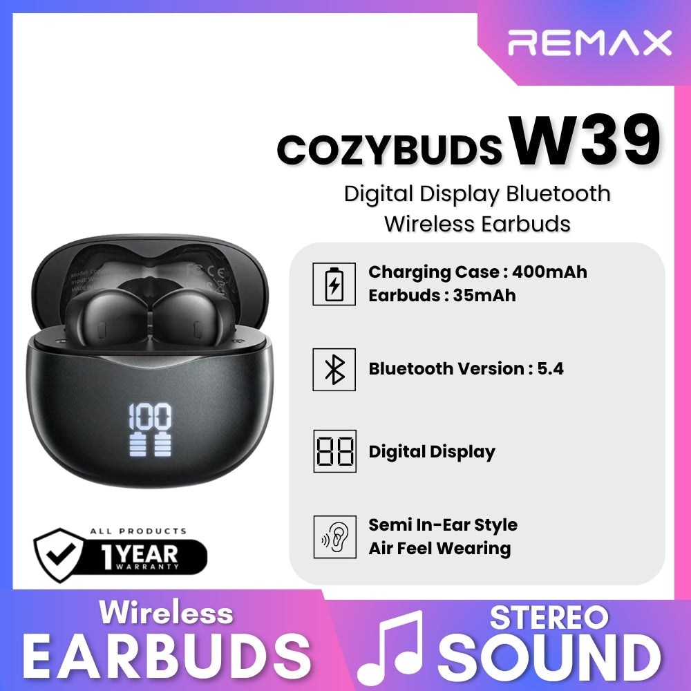 REMAX - CozyBuds W39 V5.4 Digital Display Bluetooth Wireless Earbuds Description Semi in-ear style, air feel wearing,...