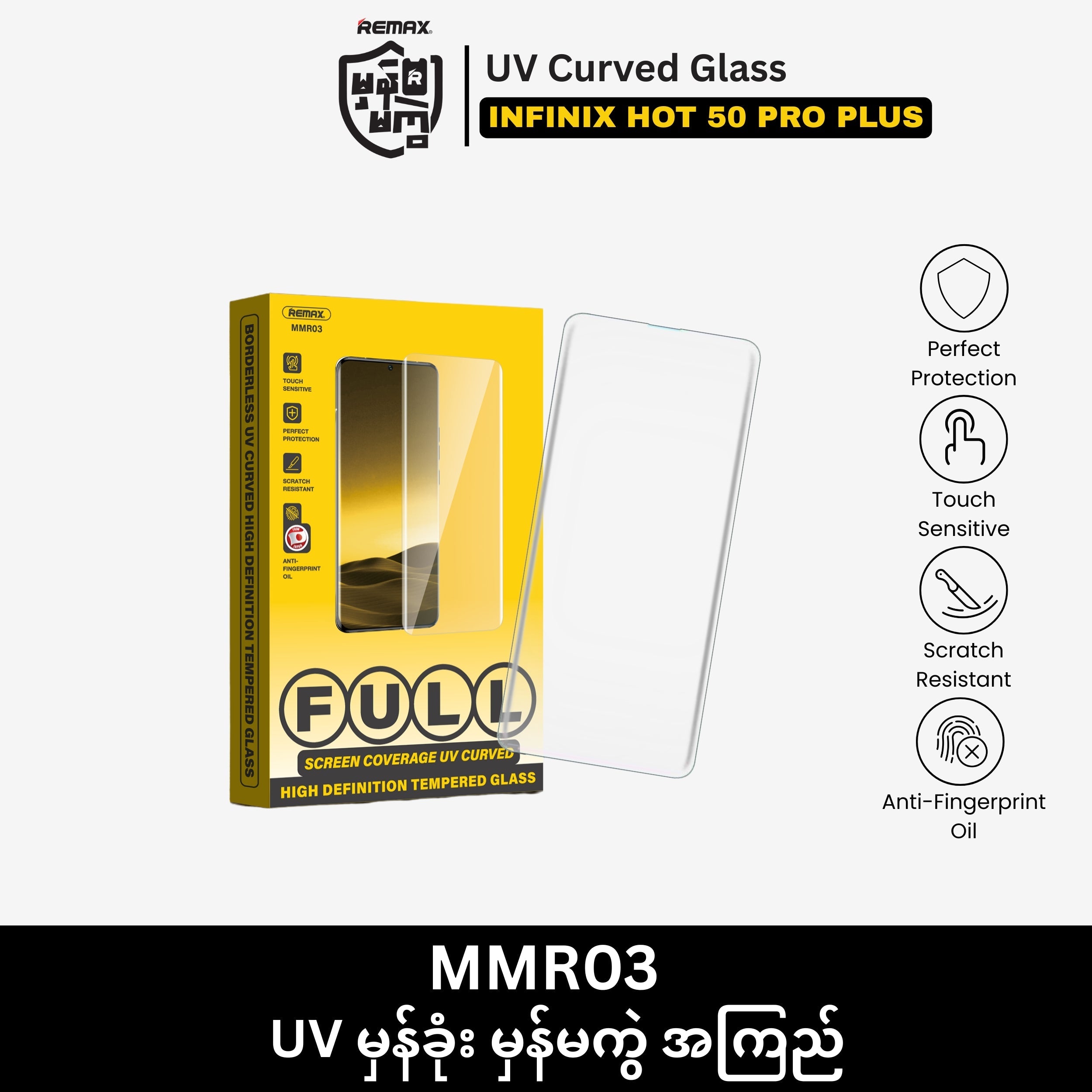 REMAX - MMR03 UV Curved Tempered Glass - INFINIX HOT 50 PLUS