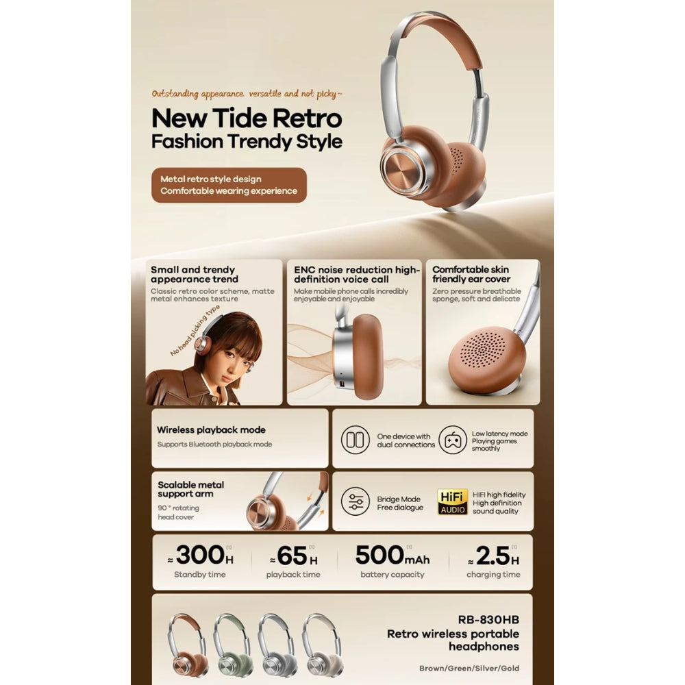 REMAX - RB-830HB Retro Wireless Portable Headphone