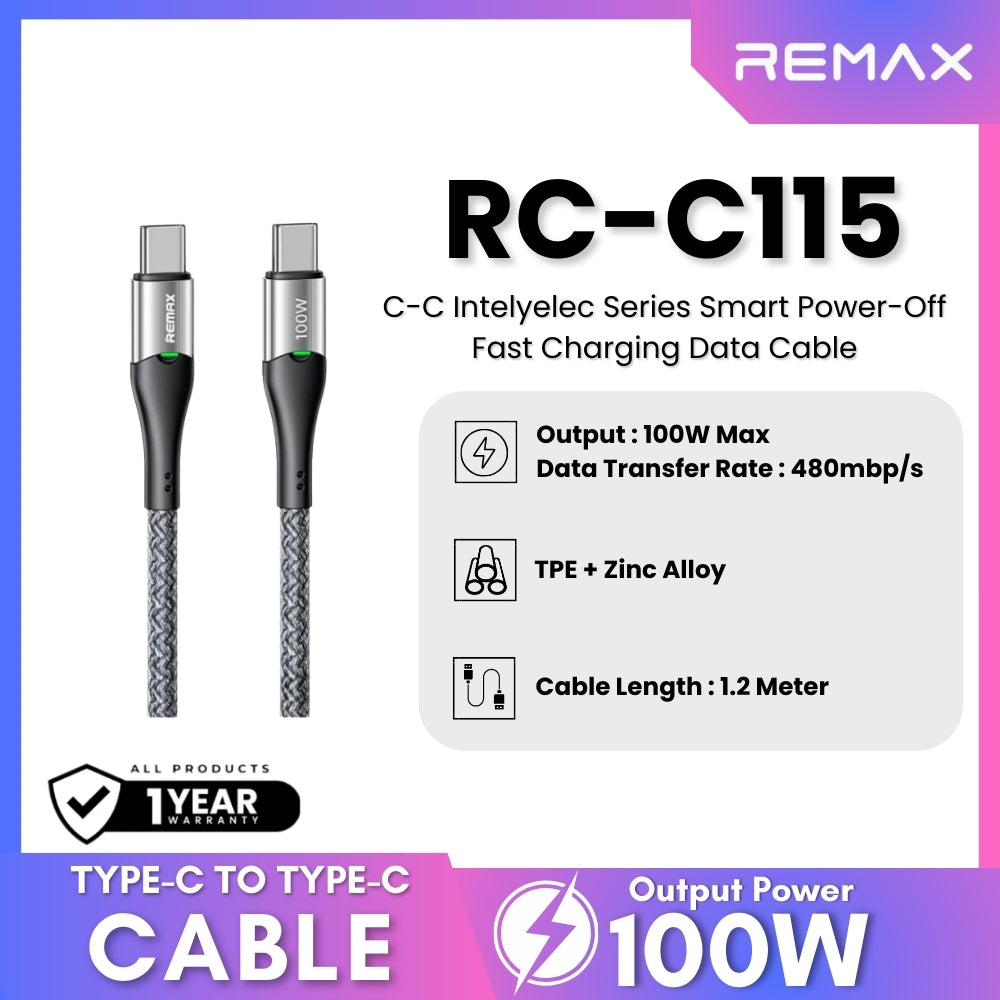REMAX - RC-C115 C-C IntelyeleC Series Type-C to Type-C Fast Charging Auto Power Off Charging Data Cable (100W)