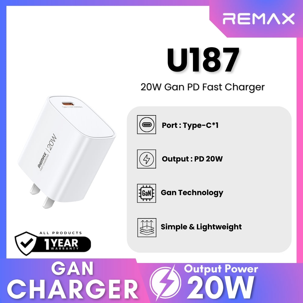 REMAX - U187 PD Gan Fast Charger (20W) Description Gallium nitride technology, fast charging without overheating Small...