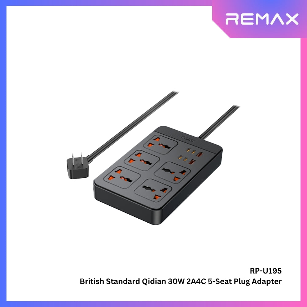 REMAX - RP-U195 British Standard Qidian 2A4C 5-Seat Plug Adapter ( 30W, 2A4C | 5AC ) Description...