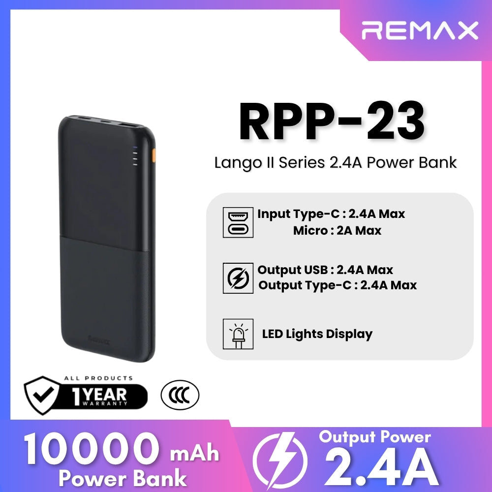 REMAX RPP-23 Lango 2 Series 10000mAh Fast Charging Power Bank(2.4A) - Black
