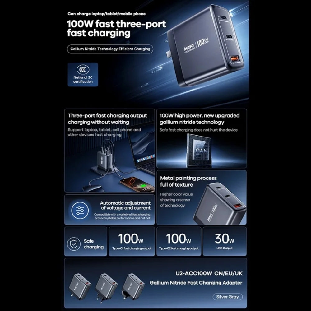 REMAX - U2-ACC100W Medium Size Gallium Nitride GAN Fast Charger