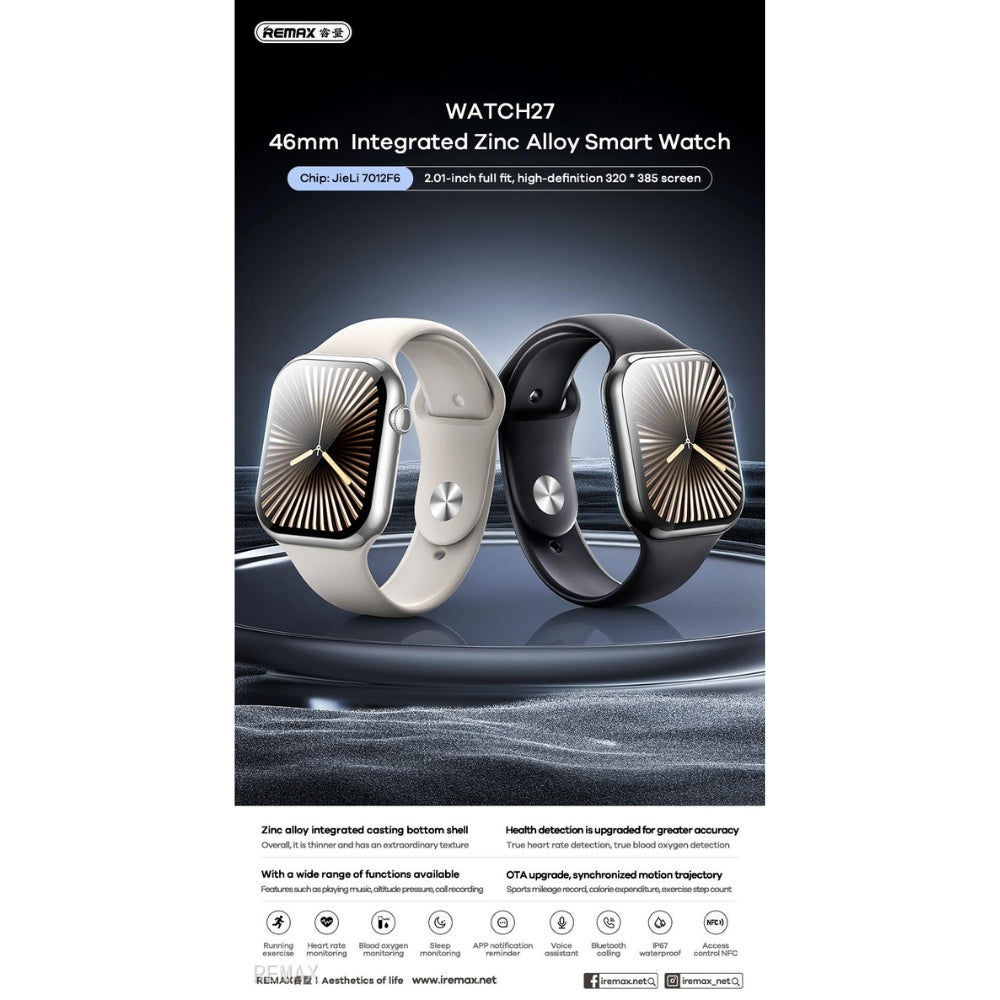 REMAX - Watch 27 46mm Integrated Zinc Alloy Smart Watch Description Product Color: Glossy Black, Frosted Silver...