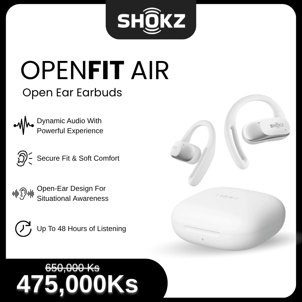 SHOKZ - Open Fit Air Bluetooth Earbuds - White Description Secure Fit, Effortless Comfort Ergonomic Ear Hook...