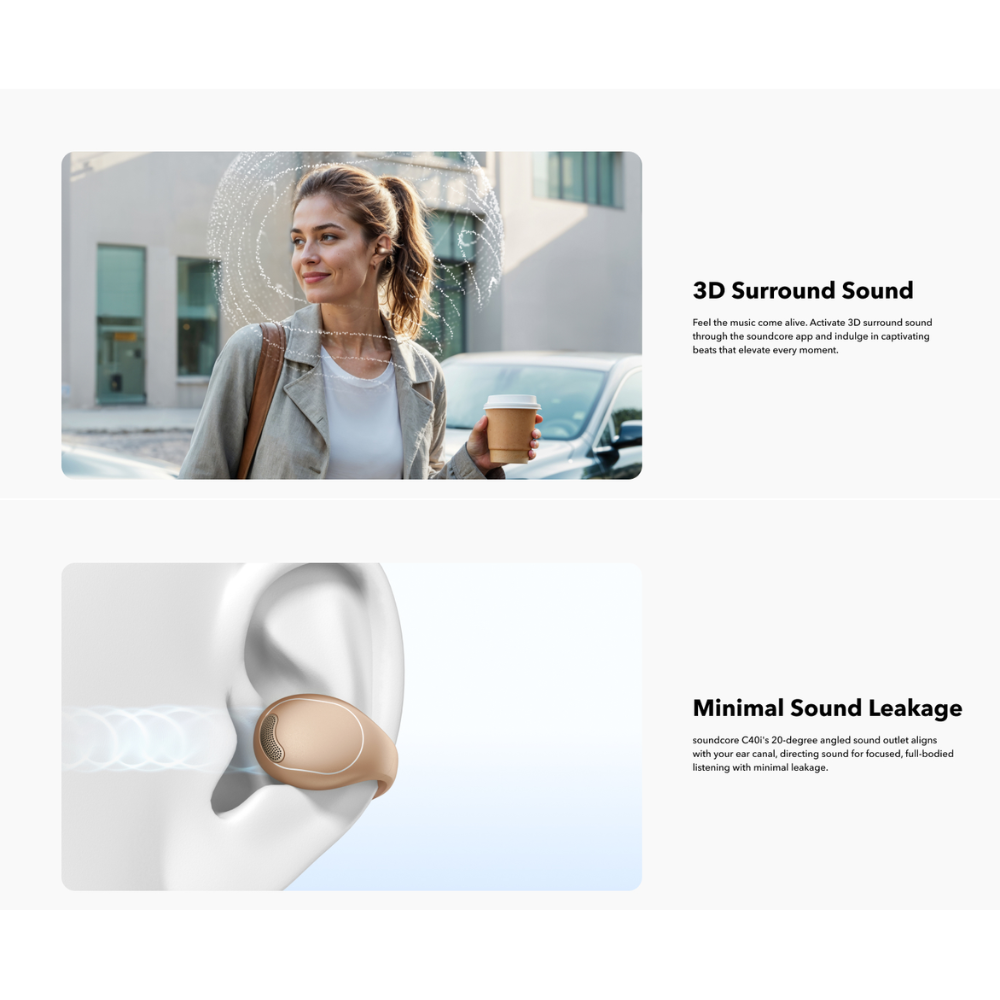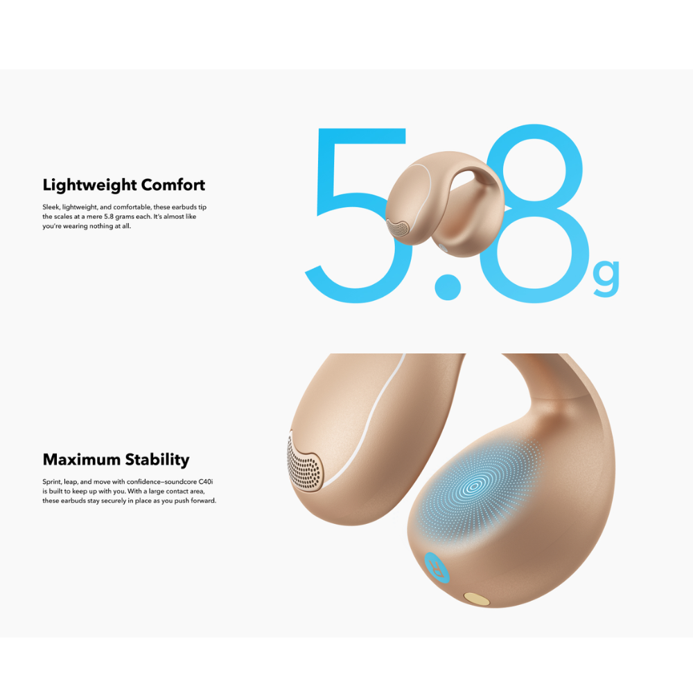 Breathable Comfort: Enjoy matchless comfort with soundcore C40i open-ear earbuds. Designed with a stable but airy clip-on style, they offer ultimate breathability, allowing you to enjoy your favorite music with total freedom.