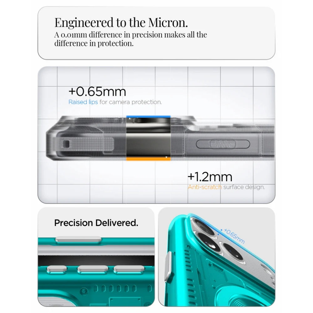 Fully covered camera bump with precise cutouts to combat everyday bumps, debris, or scratches.