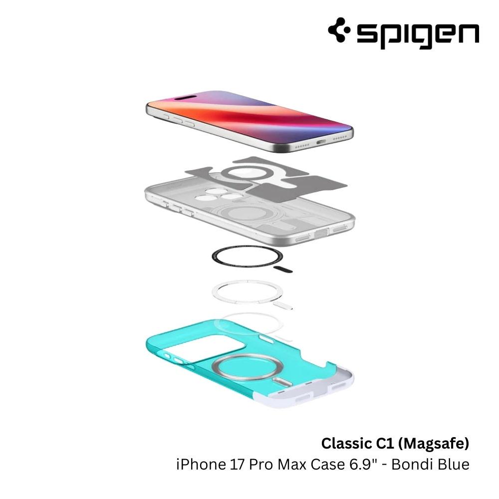 Spigen - Classic C1 Magfit Case For iPhone 17 Pro Max - Bondi Blue