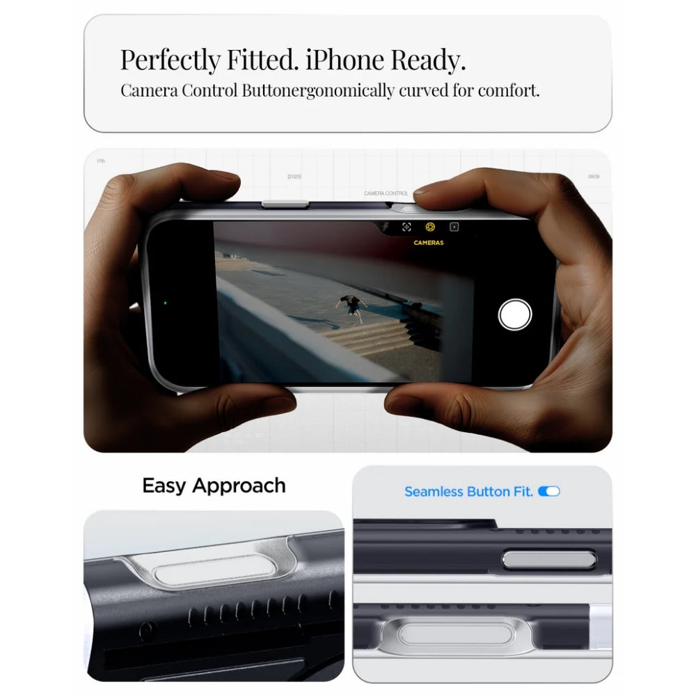 The camera control button is covered by a thin TPU layer, providing protection while maintaining functionality.