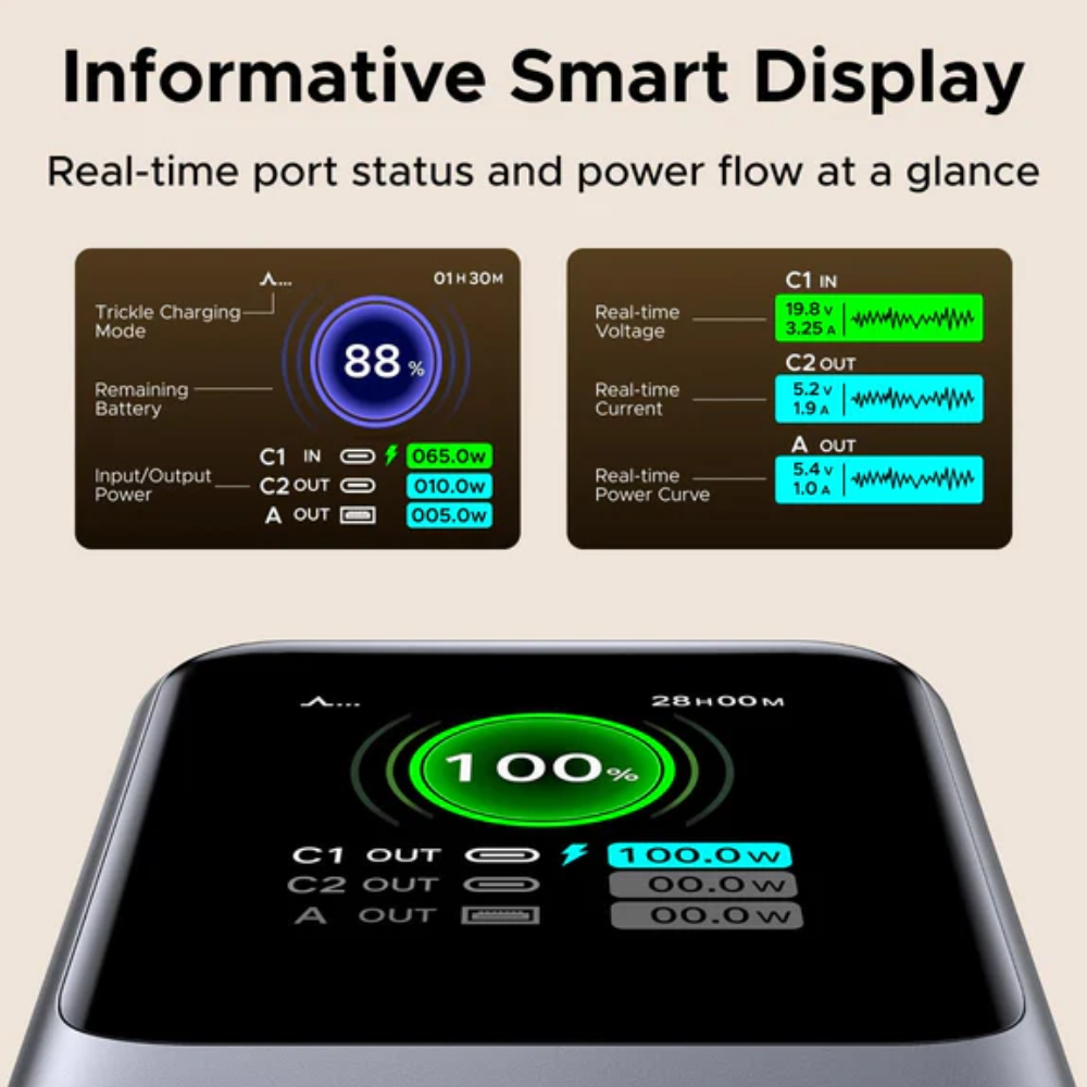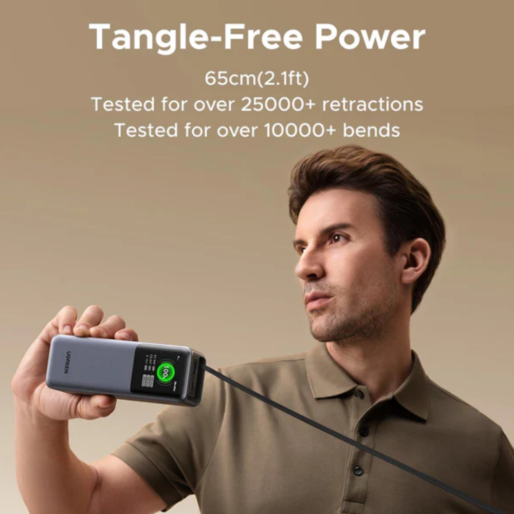 UGREEN - Nexode Power Bank 20000mAh 165W with Retractable USB-C Cable Description Built-in 25.6" Retractable Cable: Tangle-free...